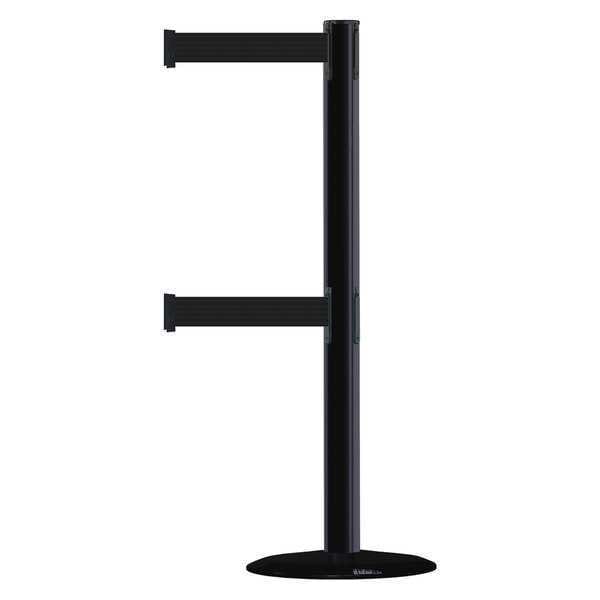Barrier Post with Belt, Maximum Overall Height 38 in, Legend No Legend, Legend Color Not Applicable, Number of Belts 2, Belt Length 7 1/2 ft, Belt Width 2 in, Belt Color Black, Belt Pattern No Pattern, Post Color Black, Product Type Stanchion, Minimum Overall Height Not Applicable, Post Diameter 2 1/2 in, Post Material Metal Alloy, Post Finish Black, Base Type Basic, Base Diameter 14 in, Base Material Cast Iron, Base Finish Black ABS No Scuff Cover, Base Color Black, ADA Compliance Yes