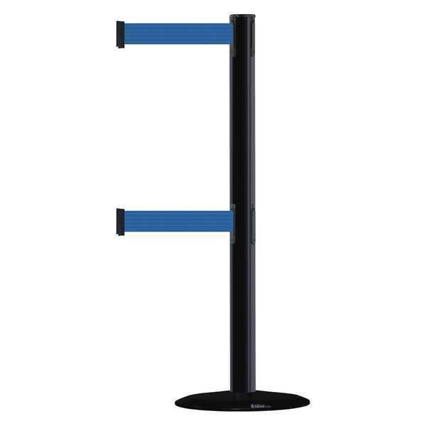 Barrier Post with Belt, Maximum Overall Height 38 in, Legend No Legend, Legend Color Not Applicable, Number of Belts 2, Belt Length 7 1/2 ft, Belt Width 2 in, Belt Color Blue, Belt Pattern No Pattern, Post Color Black, Product Type Stanchion, Minimum Overall Height Not Applicable, Post Diameter 2 1/2 in, Post Material Metal Alloy, Post Finish Black, Base Type Basic, Base Diameter 14 in, Base Material Cast Iron, Base Finish Black ABS No Scuff Cover, Base Color Black, ADA Compliance Yes