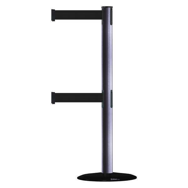 Barrier Post with Belt, Maximum Overall Height 38 in, Legend No Legend, Legend Color Not Applicable, Number of Belts 2, Belt Length 7 1/2 ft, Belt Width 2 in, Belt Color Black, Belt Pattern No Pattern, Post Color Gray, Product Type Stanchion, Minimum Overall Height Not Applicable, Post Diameter 2 1/2 in, Post Material Metal Alloy, Post Finish Powder Coated, Base Type Basic, Base Diameter 14 in, Base Material Cast Iron, Base Finish Black ABS No Scuff Cover, Base Color Black, ADA Compliance Yes