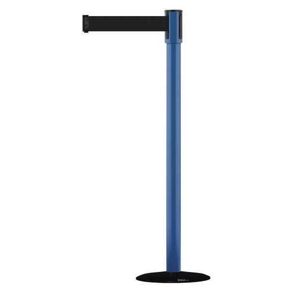 Barrier Post with Belt, Maximum Overall Height 38 in, Legend No Legend, Legend Color Not Applicable, Number of Belts 1, Belt Length 7 1/2 ft, Belt Width 2 in, Belt Color Black, Belt Pattern No Pattern, Post Color Blue, Product Type Stanchion, Minimum Overall Height Not Applicable, Post Diameter 2 in, Post Material Metal Alloy, Post Finish Powder Coated, Base Type Basic, Base Diameter 14 in, Base Material Cast Iron, Base Finish Black ABS No Scuff Cover, Base Color Black, ADA Compliance Yes