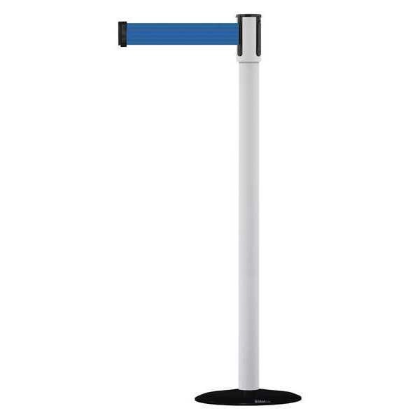 Barrier Post with Belt, Maximum Overall Height 38 in, Legend No Legend, Legend Color Not Applicable, Number of Belts 1, Belt Length 7 1/2 ft, Belt Width 2 in, Belt Color Blue, Belt Pattern No Pattern, Post Color White, Product Type Stanchion, Minimum Overall Height Not Applicable, Post Diameter 2 in, Post Material Metal Alloy, Post Finish Powder Coated, Base Type Basic, Base Diameter 14 in, Base Material Cast Iron, Base Finish Black ABS No Scuff Cover, Base Color Black, ADA Compliance Yes