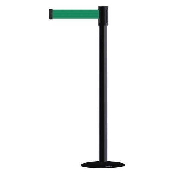 Barrier Post with Belt, Maximum Overall Height 38 in, Legend No Legend, Legend Color Not Applicable, Number of Belts 1, Belt Length 7 1/2 ft, Belt Width 2 in, Belt Color Green, Belt Pattern No Pattern, Post Color Black, Product Type Stanchion, Minimum Overall Height Not Applicable, Post Diameter 2 in, Post Material Metal Alloy, Post Finish Black, Base Type Basic, Base Diameter 14 in, Base Material Cast Iron, Base Finish Black ABS No Scuff Cover, Base Color Black, ADA Compliance Yes