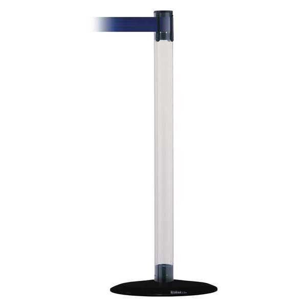 Barrier Post with Belt, Maximum Overall Height 38 in, Legend No Legend, Legend Color Not Applicable, Number of Belts 1, Belt Length 7 1/2 ft, Belt Width 2 in, Belt Color Blue, Belt Pattern No Pattern, Post Color Black, Product Type Stanchion, Minimum Overall Height Not Applicable, Post Diameter 2 1/2 in, Post Material Polycarbonate, Post Finish Clear, Base Type Basic, Base Diameter 14 in, Base Material Steel, Base Finish Black No Scuff, Base Color Black, ADA Compliance Yes