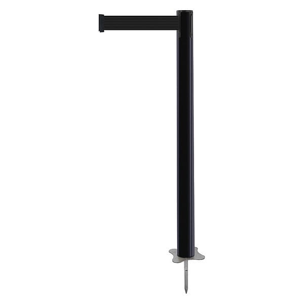 Barrier Post with Belt, Maximum Overall Height 36 in, Legend No Legend, Legend Color Not Applicable, Number of Belts 1, Belt Length 13 ft, Belt Width 2 in, Belt Color Black, Belt Pattern No Pattern, Post Color Black, Product Type Post, Minimum Overall Height Not Applicable, Post Diameter 2 1/2 in, Post Material Plastic, Post Finish Black, Base Type Stake, Base Material Metal Alloy, Base Finish Unfinished, ADA Compliance No, Height Adjustability Fixed Height, Indoor/Outdoor Usage Outdoor