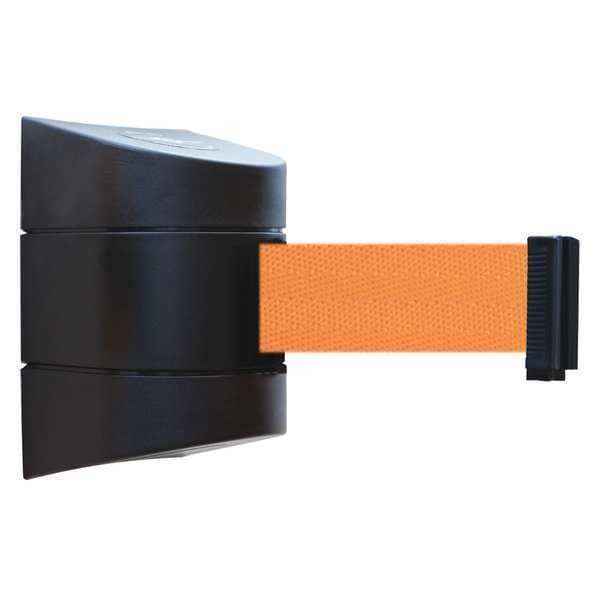 Barrier Post with Belt, Belt Length 24 ft, Belt Width 2 In., Belt Color Orange, Belt Pattern Horizontal Stripe, Legend No Legend, Legend Color Not Applicable, Frame Color Black, Number of Belts 1, Frame Finish Unfinished