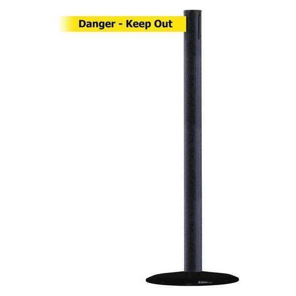 Barrier Post with Belt, Black Wrinkle, 13 ft Length, 38 in Post Height, Danger Keep Out