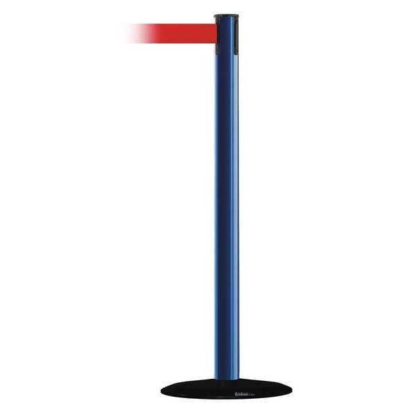 Barrier Post with Belt, Maximum Overall Height 38 in, Legend No Legend, Legend Color Not Applicable, Number of Belts 1, Belt Length 7 1/2 ft, Belt Width 2 in, Belt Color Red, Belt Pattern No Pattern, Post Color Blue, Product Type Stanchion, Minimum Overall Height Not Applicable, Post Diameter 2 1/2 in, Post Material Metal Alloy, Post Finish Powder Coated, Base Type Basic, Base Diameter 14 in, Base Material Cast Iron, Base Finish Black ABS No Scuff Cover, Base Color Black, ADA Compliance Yes