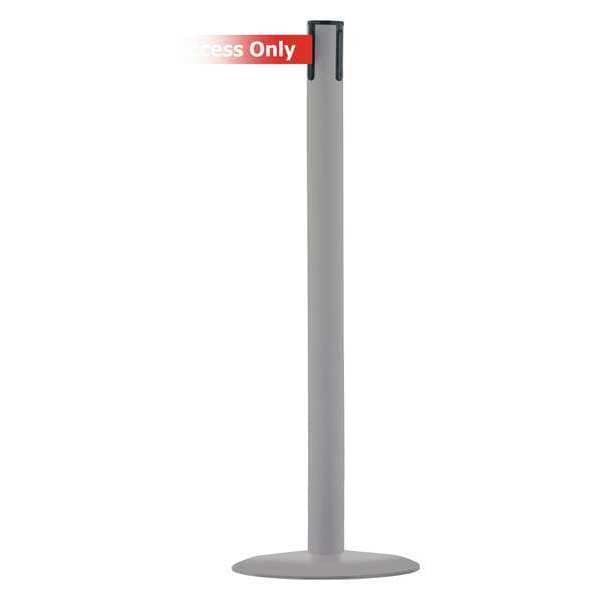 Barrier Post with Belt, Maximum Overall Height 38 in, Legend Authorized Access Only, Legend Color White, Number of Belts 1, Belt Length 7 1/2 ft, Belt Width 2 in, Belt Color Red, Post Color Gray, Product Type Stanchion, Minimum Overall Height Not Applicable, Post Diameter 2 1/2 in, Post Material Stainless Steel, Post Finish Gray, Base Type Standard, Base Diameter 14 in, Base Material Stainless Steel, Base Finish Gray, Base Color Gray, ADA Compliance Yes, Resistance Properties Weather Resistant