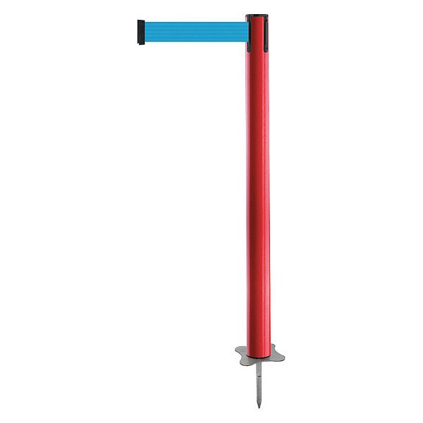 Barrier Post with Belt, Maximum Overall Height 36 in, Legend No Legend, Legend Color Not Applicable, Number of Belts 1, Belt Length 7 1/2 ft, Belt Width 2 in, Belt Color Light Blue, Belt Pattern No Pattern, Post Color Red, Product Type Post, Minimum Overall Height Not Applicable, Post Diameter 2 1/2 in, Post Material Plastic, Post Finish Powder Coated, Base Type Stake, Base Material Metal Alloy, Base Finish Unfinished, ADA Compliance No, Resistance Properties Wear Resistant