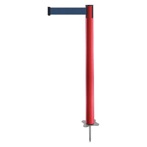 Barrier Post with Belt, Maximum Overall Height 36 in, Legend No Legend, Legend Color Not Applicable, Number of Belts 1, Belt Length 7 1/2 ft, Belt Width 2 in, Belt Color Dark Blue, Belt Pattern No Pattern, Post Color Red, Product Type Post, Minimum Overall Height Not Applicable, Post Diameter 2 1/2 in, Post Material Plastic, Post Finish Powder Coated, Base Type Stake, Base Material Metal Alloy, Base Finish Unfinished, ADA Compliance No, Resistance Properties Wear Resistant