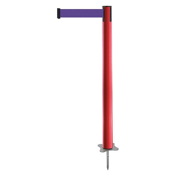 Barrier Post with Belt, Maximum Overall Height 36 in, Legend No Legend, Legend Color Not Applicable, Number of Belts 1, Belt Length 7 1/2 ft, Belt Width 2 in, Belt Color Purple, Belt Pattern No Pattern, Post Color Red, Product Type Post, Minimum Overall Height Not Applicable, Post Diameter 2 1/2 in, Post Material Plastic, Post Finish Powder Coated, Base Type Stake, Base Material Metal Alloy, Base Finish Unfinished, ADA Compliance No, Resistance Properties Wear Resistant