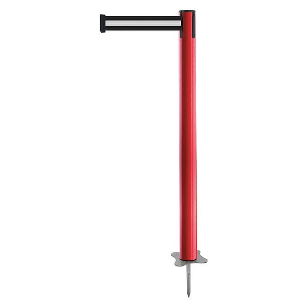 Barrier Post with Belt, Maximum Overall Height 36 in, Legend No Legend, Legend Color Not Applicable, Number of Belts 1, Belt Length 7 1/2 ft, Belt Width 2 in, Belt Color Black/White, Belt Pattern No Pattern, Post Color Red, Product Type Post, Minimum Overall Height Not Applicable, Post Diameter 2 1/2 in, Post Material Plastic, Post Finish Powder Coated, Base Type Stake, Base Material Metal Alloy, Base Finish Unfinished, ADA Compliance No, Resistance Properties Wear Resistant