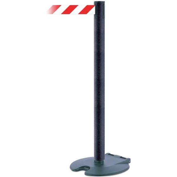 Barrier Post with Belt, Red/White Diagonal, 7 1/2 ft Length, 38 in Post Height, No Legend