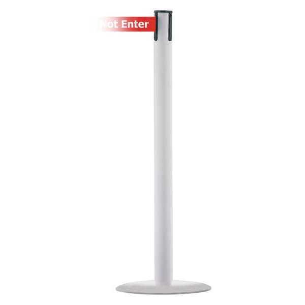Barrier Post with Belt, White, 13 ft Length, 38 in Post Height, Caution Do Not Enter, White