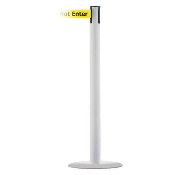 Barrier Post with Belt, White, 13 ft Length, 38 in Post Height, Caution Do Not Enter, White