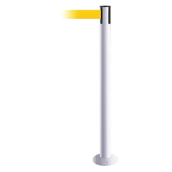 Barrier Post with Belt, Maximum Overall Height 36 1/2 in, Legend No Legend, Legend Color Not Applicable, Number of Belts 1, Belt Length 7 1/2 ft, Belt Width 2 in, Belt Color Yellow, Belt Pattern No Pattern, Post Color White, Product Type Stanchion, Minimum Overall Height Not Applicable, Post Diameter 2 1/2 in, Post Material Metal Alloy, Post Finish Powder Coated, Base Type Flange, Base Configuration Attached, Base Diameter 5 in, Base Material Steel, Base Finish Powder Coated, Base Color White