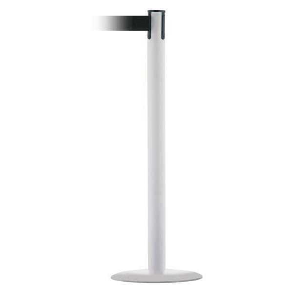 Barrier Post with Belt, Maximum Overall Height 38 in, Legend No Legend, Legend Color Not Applicable, Number of Belts 1, Belt Length 7 1/2 ft, Belt Width 2 in, Belt Color Black, Belt Pattern No Pattern, Post Color White, Product Type Stanchion, Minimum Overall Height Not Applicable, Post Diameter 2 1/2 in, Post Material Stainless Steel, Post Finish White, Base Type Standard, Base Diameter 14 in, Base Material Stainless Steel, Base Finish White, Base Color White, ADA Compliance Yes