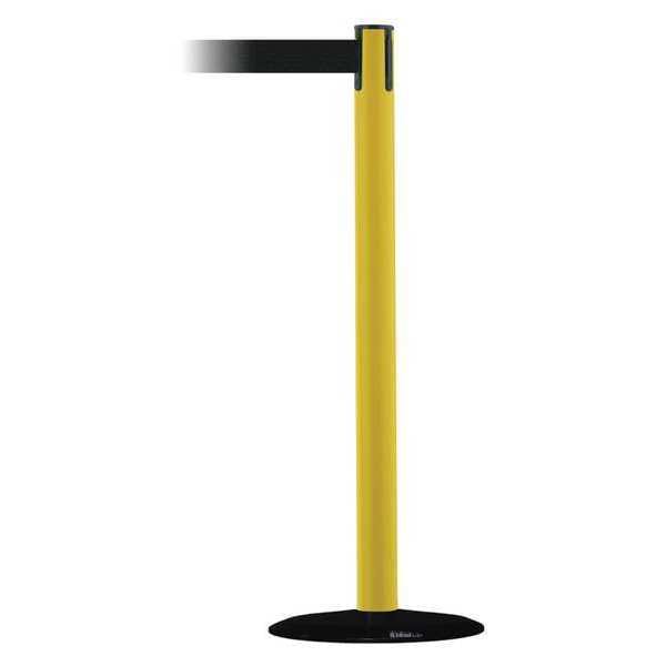 Barrier Post with Belt, Maximum Overall Height 38 in, Legend No Legend, Legend Color Not Applicable, Number of Belts 1, Belt Length 7 1/2 ft, Belt Width 2 in, Belt Color Black, Belt Pattern No Pattern, Post Color Yellow, Product Type Stanchion, Minimum Overall Height Not Applicable, Post Diameter 2 1/2 in, Post Material Metal Alloy, Post Finish Powder Coated, Base Type Basic, Base Diameter 14 in, Base Material Cast Iron, Base Finish Black ABS No Scuff Cover, Base Color Black, ADA Compliance Yes