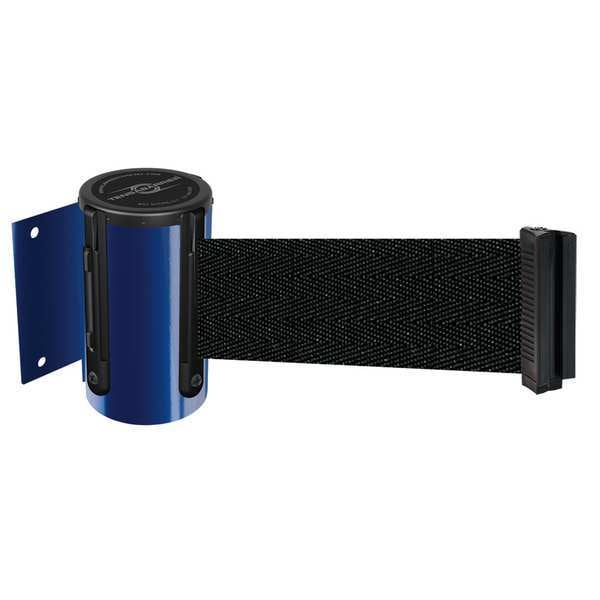Retractable Belt Barrier, Belt Length 13 ft, Belt Color Black, Frame Color Blue, Number of Belts 1, Includes Receiving Clip, Includes Mounting Hardware Included