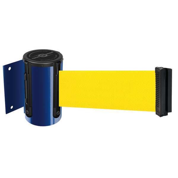 Retractable Belt Barrier, Belt Length 13 ft, Belt Color Yellow, Frame Color Blue, Number of Belts 1, Includes Receiving Clip, Includes Mounting Hardware Included