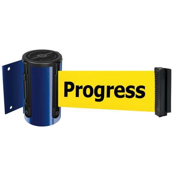 Retractable Belt Barrier, Belt Length 7 1/2 ft, Belt Color Yellow, Legend Cleaning in Progress, Legend Color Black, Frame Color Blue, Number of Belts 1