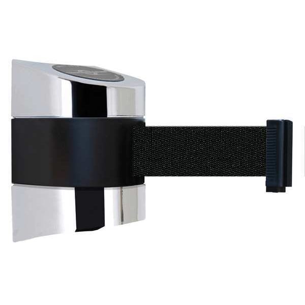 Retractable Belt Barrier, Belt Length 15 ft, Belt Color Black, Number of Belts 1, Frame Finish Polished Chrome