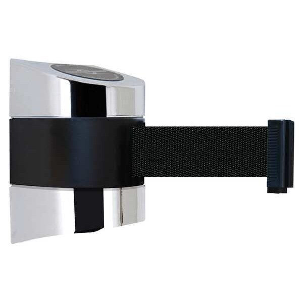 Retractable Belt Barrier, Belt Length 24 ft, Belt Color Black, Number of Belts 1, Frame Finish Polished Chrome