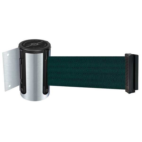 Retractable Belt Barrier, Belt Length 13 ft, Belt Color Green, Number of Belts 1, Frame Finish Satin Chrome