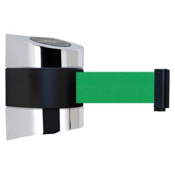 Retractable Belt Barrier, Belt Length 15 ft, Belt Color Green, Number of Belts 1, Frame Finish Polished Chrome
