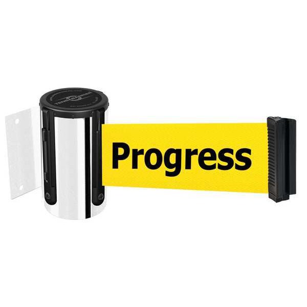 Retractable Belt Barrier, Belt Length 13 ft, Belt Color Yellow, Legend Cleaning in Progress, Legend Color Black, Number of Belts 1, Frame Finish Polished Chrome