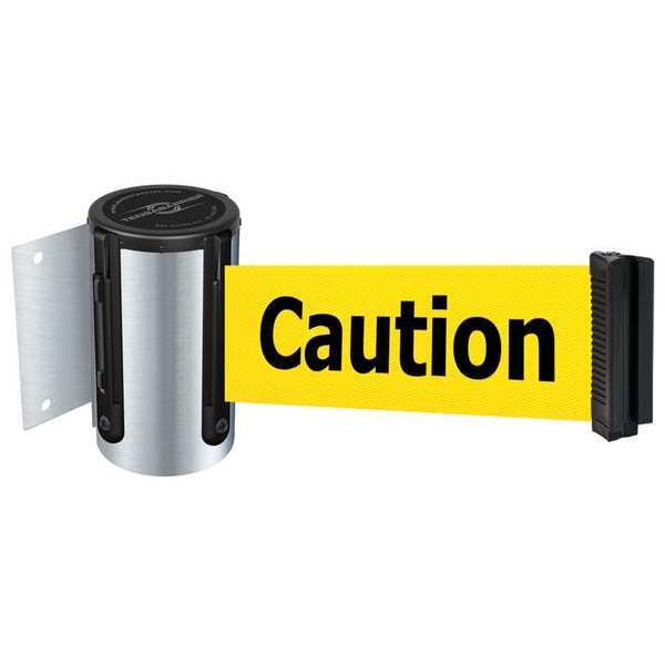 Retractable Belt Barrier, Belt Length 13 ft, Belt Color Yellow, Legend Caution Do Not Enter, Legend Color Black, Number of Belts 1, Frame Finish Satin Chrome