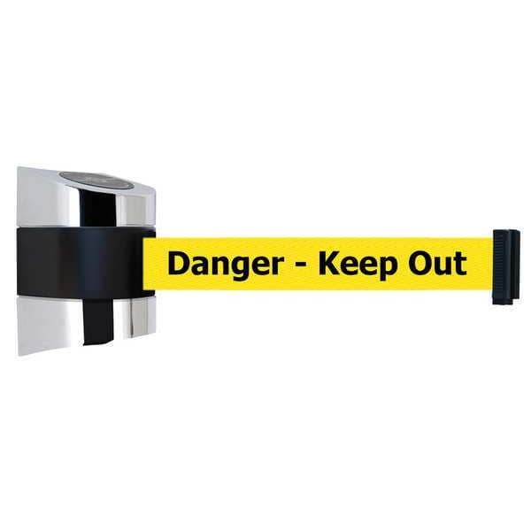 Retractable Belt Barrier, Belt Length 24 ft, Belt Color Yellow, Legend Danger Keep Out, Legend Color Black, Number of Belts 1, Frame Finish Polished Chrome