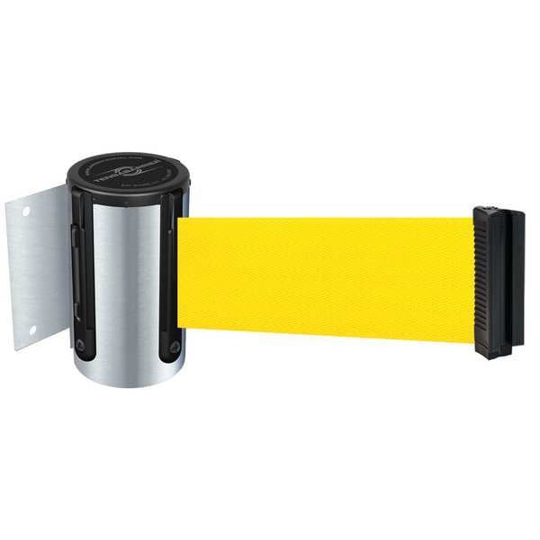 Retractable Belt Barrier, Belt Length 7 1/2 ft, Belt Color Yellow, Number of Belts 1, Frame Finish Satin Chrome