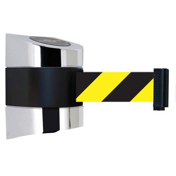 Retractable Belt Barrier, Belt Length 15 ft, Belt Color Black/Yellow, Belt Pattern Chevron, Number of Belts 1, Frame Finish Polished Chrome