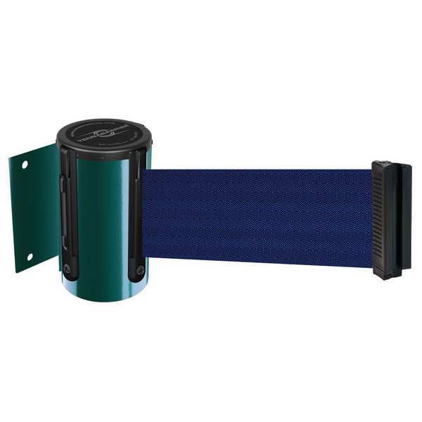 Retractable Belt Barrier, Belt Length 13 ft, Belt Color Blue, Frame Color Green, Number of Belts 1, Includes Receiving Clip, Includes Mounting Hardware Included