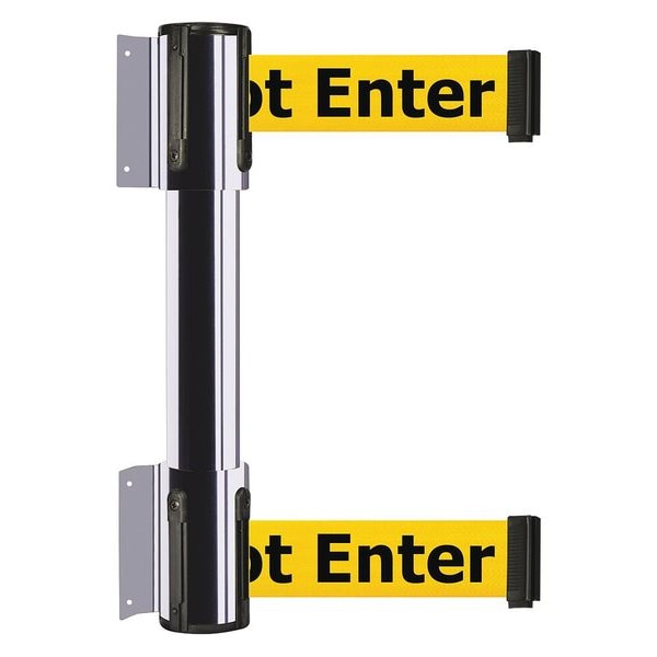 Belt Barrier, Polished Chrome, 7 1/2 ft Length, 16 1/2 in Post Height, Caution Do Not Enter