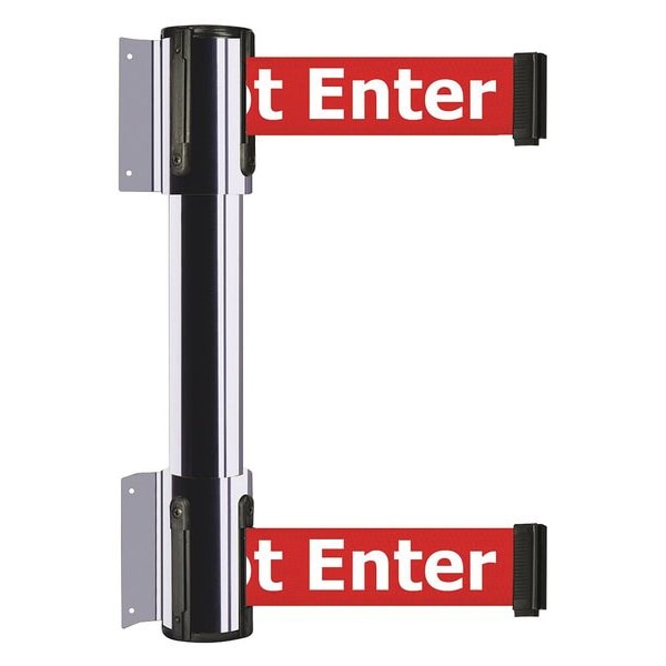 Belt Barrier, Polished Chrome, 7 1/2 ft Length, 16 1/2 in Post Height, Danger Do Not Enter