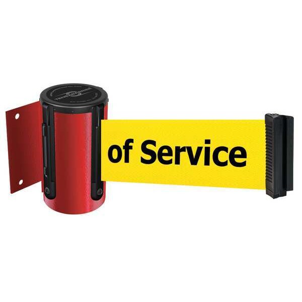 Retractable Belt Barrier, Belt Length 13 ft, Belt Color Yellow, Legend Out of Service, Legend Color Black, Frame Color Red, Number of Belts 1