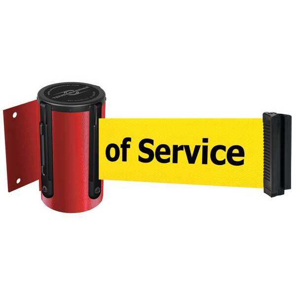 Retractable Belt Barrier, Belt Length 7 1/2 ft, Belt Color Yellow, Legend Out of Service, Legend Color Black, Frame Color Red, Number of Belts 1