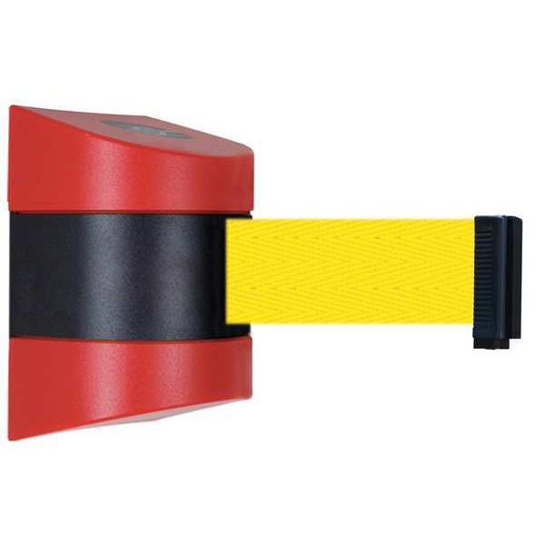 Retractable Belt Barrier, Belt Length 30 ft, Belt Color Yellow, Frame Color Red, Number of Belts 1