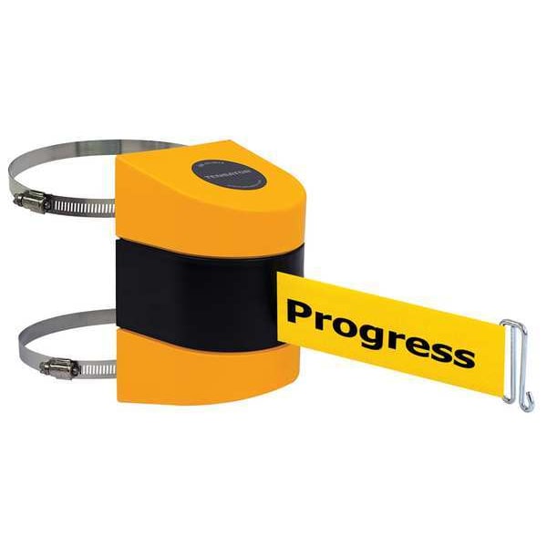 Retractable Belt Barrier, Mounting Style Hose Clamp Mounting Plate, Wire Clip, Belt Length 15 ft, Belt Color Yellow, Legend Cleaning in Progress, Legend Color Black, Frame Color Yellow, Number of Belts 1, Includes Hose Clamp Fixing, Wire Clip Belt End, Includes Mounting Hardware Included