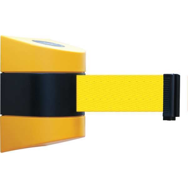 Retractable Belt Barrier, Belt Length 30 ft, Belt Color Yellow, Frame Color Yellow, Number of Belts 1