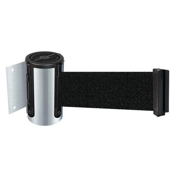 Retractable Belt Barrier, Belt Length 13 ft, Belt Color Black, Number of Belts 1, Frame Finish Satin Chrome
