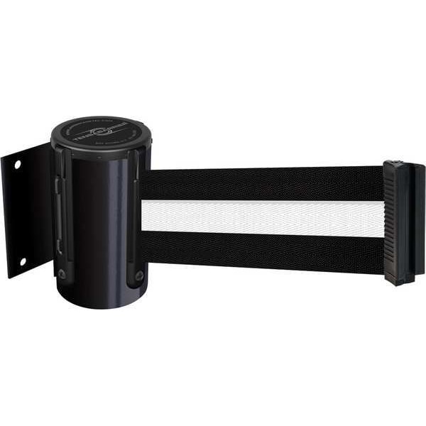 Retractable Belt Barrier, Mounting Style Bracket, Belt Length 7 1/2 ft, Belt Color Black/White, Overall Height 5 in, Includes Retract Mechanism, Wall Bracket, Includes Mounting Hardware Included