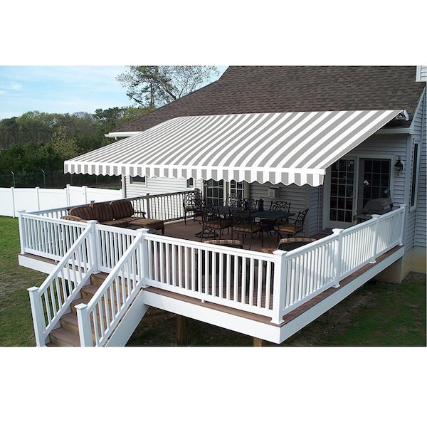 Retractable 10' X 8' Home Patio Awning Canopy Grey and White Stripes
