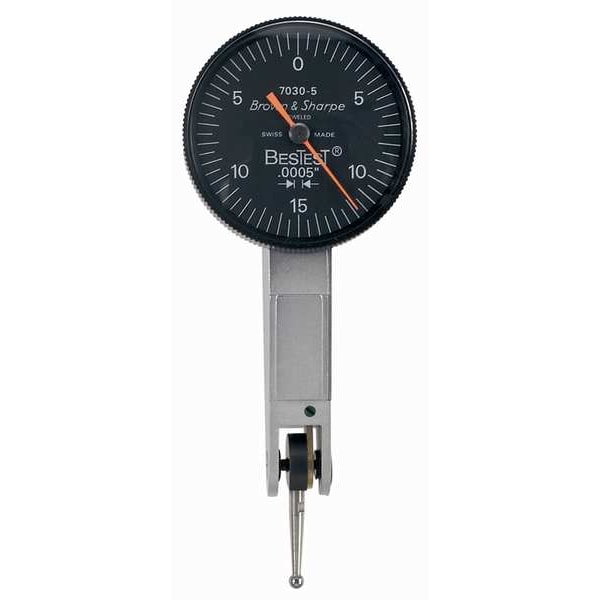 The TESA BROWN & SHARPE 599-7031-5 Dial Test Indicator is a high-quality tool that can be used to accurately measure both inside and outside dimensions. With a 0 to 0.030 in. range, this dial indicator is perfect for measuring small components and pieces. The black face of the dial indicator has easy to read graduations of 0.0005 in., as well as an accuracy level of +/-0.0005 in.. Designed with constant clockwise rotation, automatic reversal and a balanced dial reading, this is a simple yet accurate tool to use when measuring components. The TESA BROWN & SHARPE Dial Test Indicator is the high quality tool you need for precision measurements every time.