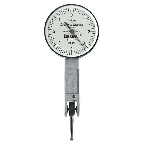 Item Horizontal Dial Test Indicator, Range 0 in to 0.008 in, Graduations 0.008 in, Long Form Calibration Certificate No, Contact Point Dia. 0.08 in, Dial Color White, Dial Reading 0-4-0, Dial Size 1.5 in, Dimension Type Inch, Included Certification Certificate of Accuracy and Traceability, Includes Dovetail Mount Attachments Yes, Maximum Measurement - Inch 0.008 in, Minimum Measurement - Inch 0 in, Number of Indicators 1, Operation Type Lever-Style, Range per Revolution 0.00005 in