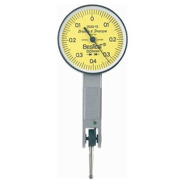 Item Horizontal Dial Test Indicator, Range 0 mm to 0.2 mm, Graduations 0.002 mm, Long Form Calibration Certificate No, Contact Point Dia. 0.08 in, Dial Color Yellow, Dial Reading 0-100-0, Dial Size 28 mm, Dimension Type Metric, Included Certification Certificate of Accuracy and Traceability, Includes Dovetail Mount Attachments Yes, Maximum Measurement - mm 0.2 mm, Minimum Measurement - mm 0 mm, Number of Indicators 1, Operation Type Lever-Style, Range per Revolution 0.002mm, Series BESTEST