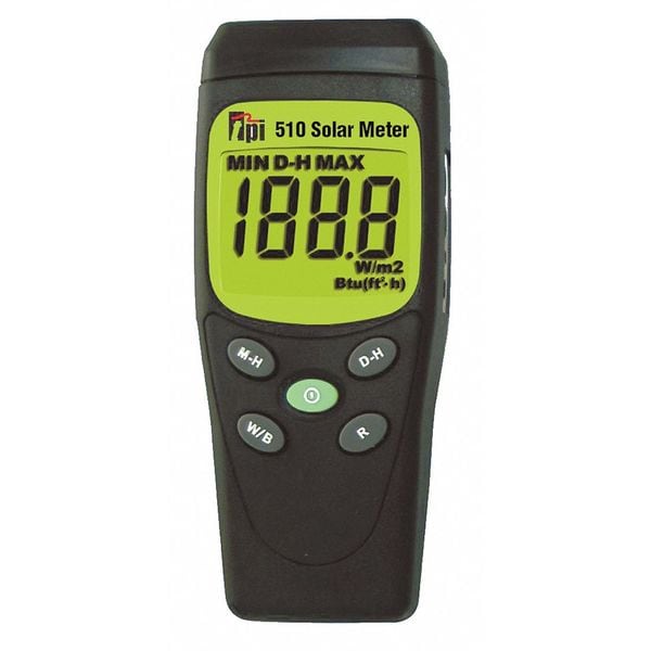 Irradiance Meter, Irradiance Measurement - Minimum 0 W/sq m, Irradiance Measurement - Maximum 1,999 W/sq m, Compass Bearing Range 0 Degrees to 360 Degrees , Inclination Measurement - Minimum 0 Degrees , Inclination Measurement - Maximum 360 Degrees , Display LCD, Datalogging No, Includes Carrying Case, Number of Batteries 1, Irradiance Resolution 1 W/sq m, Temperature Measurement - Maximum 104 Degrees F, Temperature Measurement - Minimum 41 Degrees F, Includes Batteries Yes