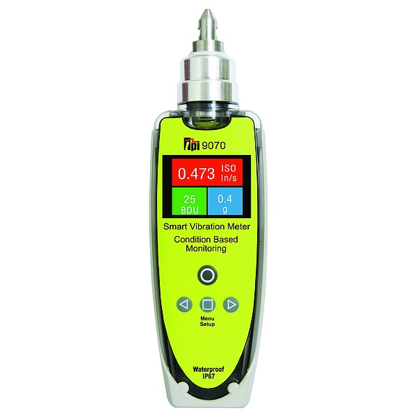 Vibration testing Cert of Calibration, Accuracy +/-5 Percent, Acceleration Measurement - Minimum 0.001g, Acceleration Measurement - Maximum 50g, Number of Records Stored 10, Maximum Velocity Measured 999.9 in/sec, Minimum Velocity Measured 0.001 in/sec, Acceleration Max Resolution 0.01g, Displacement Max Resolution 0.001 cm, Maximum Displacement Measured 508 mm, Minimum Displacement Measured 0.001 cm, Velocity Max Resolution 0.001 in/sec, Auto Power Off Yes, Alert Type Vibration